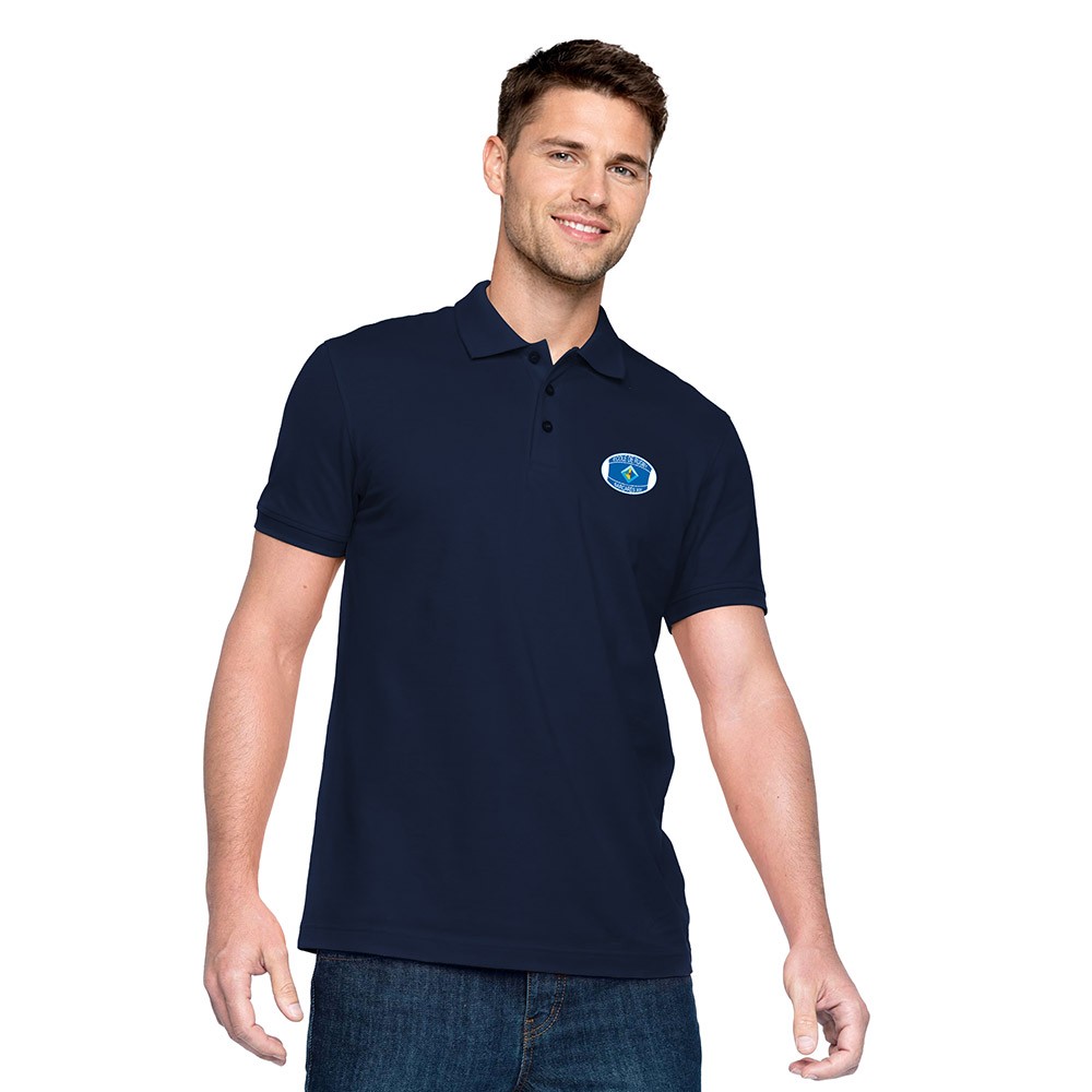 100% coton piqué pré-rétréci. Coupe confortable. Col et bas de manches en bord-côte. Patte de boutonnage 3 boutons ton sur ton. Bande de propreté ton sur ton à l'encolure.