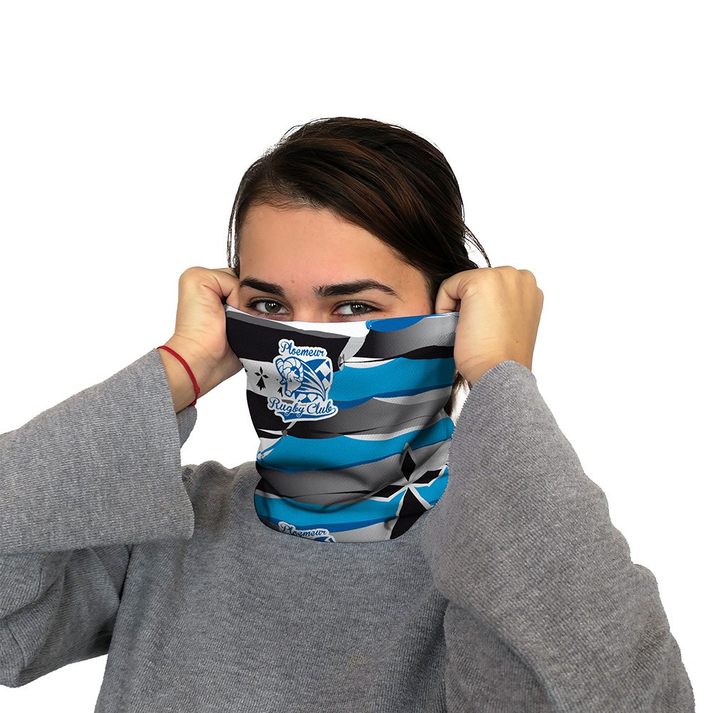 Tour de cou multifonctions Ploemeur Rugby Club taille adulte, entièrement sublimé. 100% polyester.