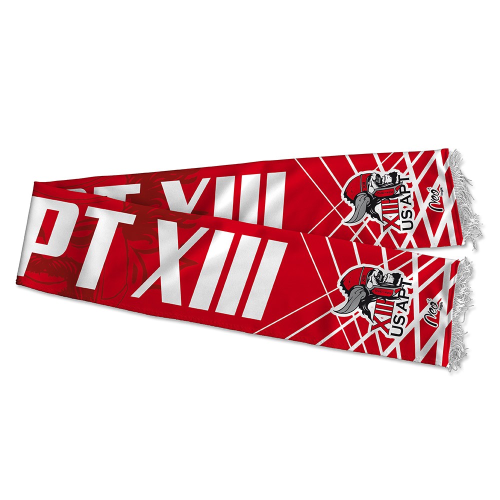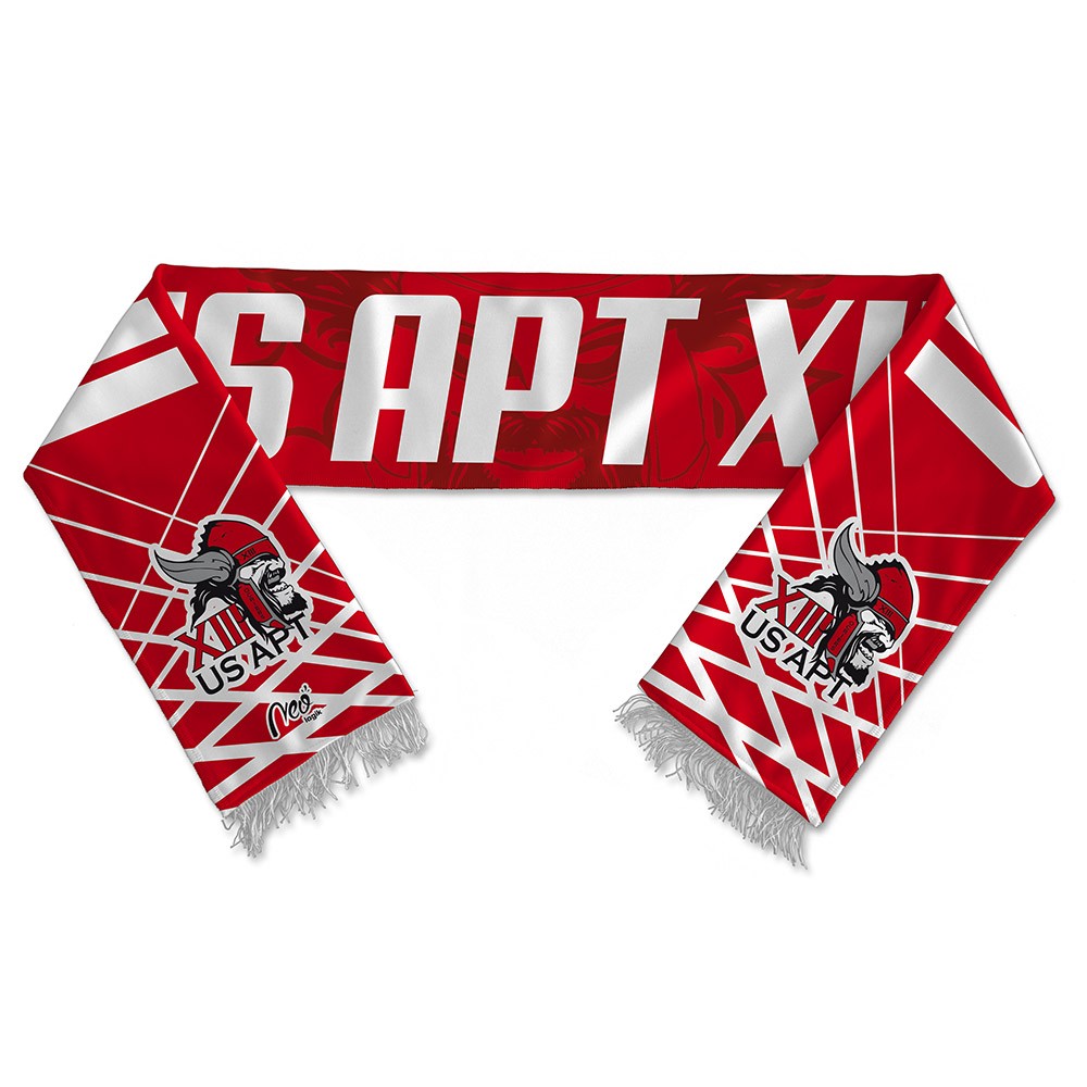 Écharpe supporter US Apt XIII entièrement sublimée recto verso. 100% polyester. Nos produits 100% sublimés offrent une durée de vie incomparable, tant au niveau du tissu qu’au niveau de la tenue des couleurs.